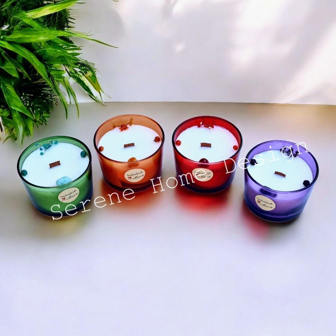 Kristal Koleksiyonumuz doğal taşlar ve gerçek kurutulmuş çiçekler ile dekore edilen, doğal içerikli, renkli transparan cam bardak mumlarımızdır. Mumlarımız bardakların rengi ile uyumlu doğal taşlar ile dekore edilmiştir.