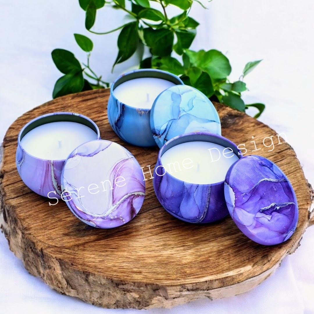 Mermer desenli mum koleksiyonumuz, mermer desenli metal kutulara hazırlanan doğal içerikli ve kokulu soya wax mumlarımızdır.